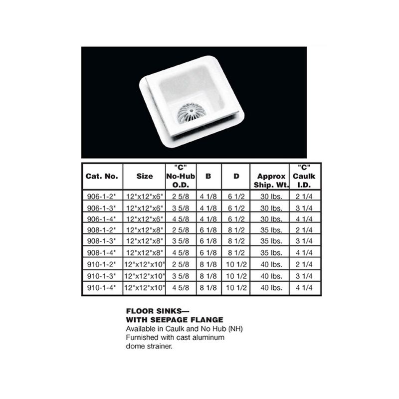 FLOOR SINK 12X12X6 3 NH